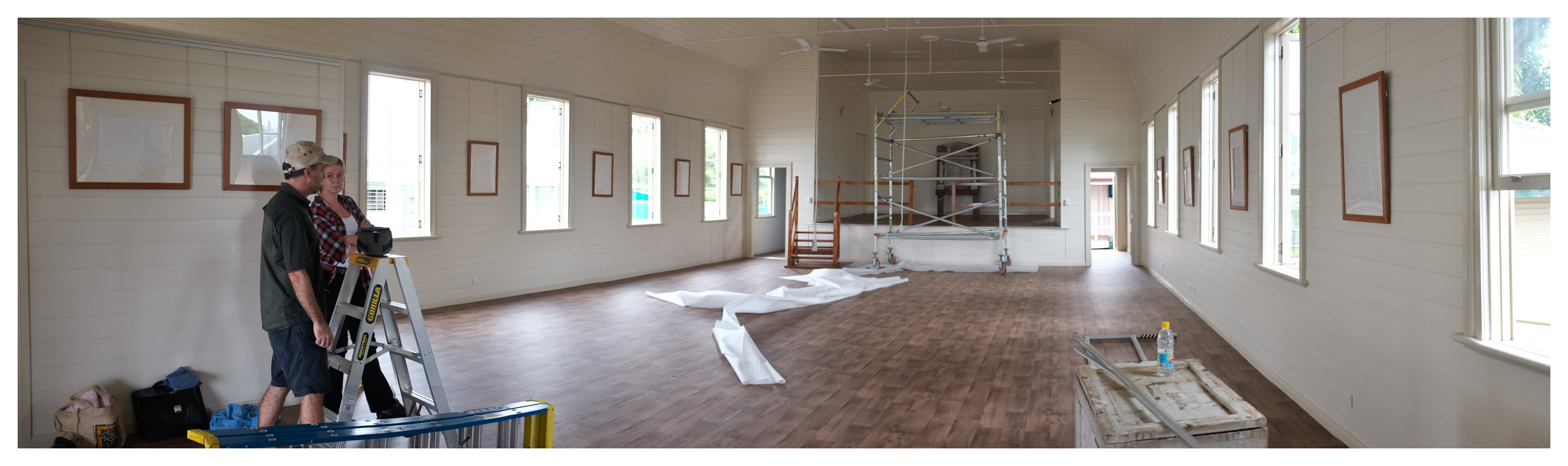 Ewen worked with Jo Wills (MDO Cairns) and Michael Marzik (designer) on Thursday 15 March in Cardwell to install the new hanging system. The Hubinger Hall was handed back to Cassowary Coast Council after a rebuild following cyclone Yasi. Ewen’s work with the historical society in Cardwell has meant that he was able to plan a new exhibition space for them from the beginning.