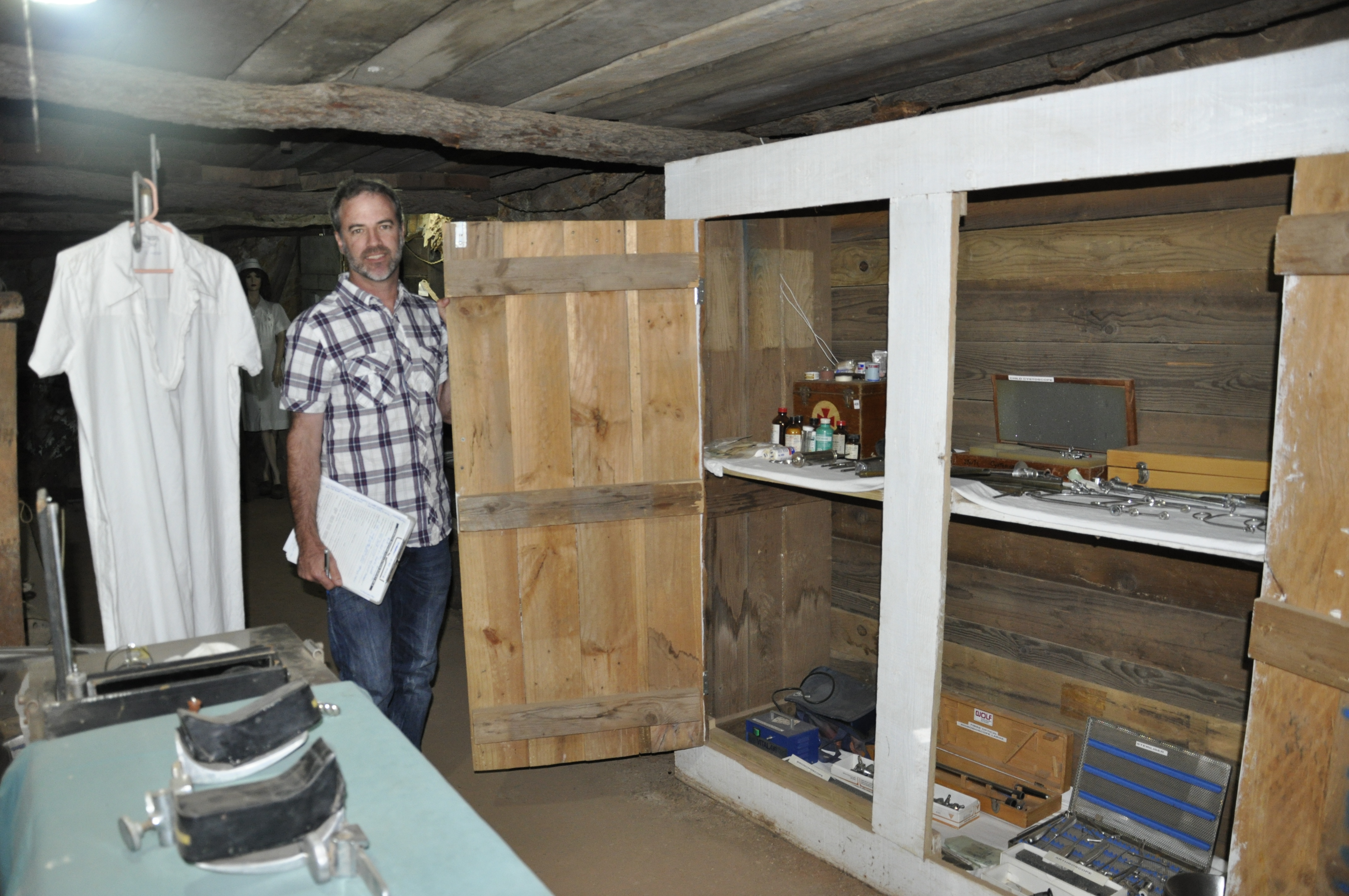 Jo Wills and I recently visited the Underground Hospital in Mt Isa. The underground section of the hospital was built after Darwin was bombed by the Japanese in February 1942. There was a belief that Mt Isa could also be bombed and that precautions needed to be taken to secure the operation of the hospital. Local miners volunteered to work in their spare time and on weekends to build the facility. A H-shaped underground “bunker” was dug out of the solid rock in the hill beside Mount Isa’s Base Hospital over a sixteen week period. After the war the hospital was forgotten about and in 1999 it was rediscovered and restored over time. Today the museum also includes a substantial hospital and medical equipment display above ground as well as an underground experience complete with objects and props. The underground experience details how the hospital would have operated if it had become operational.