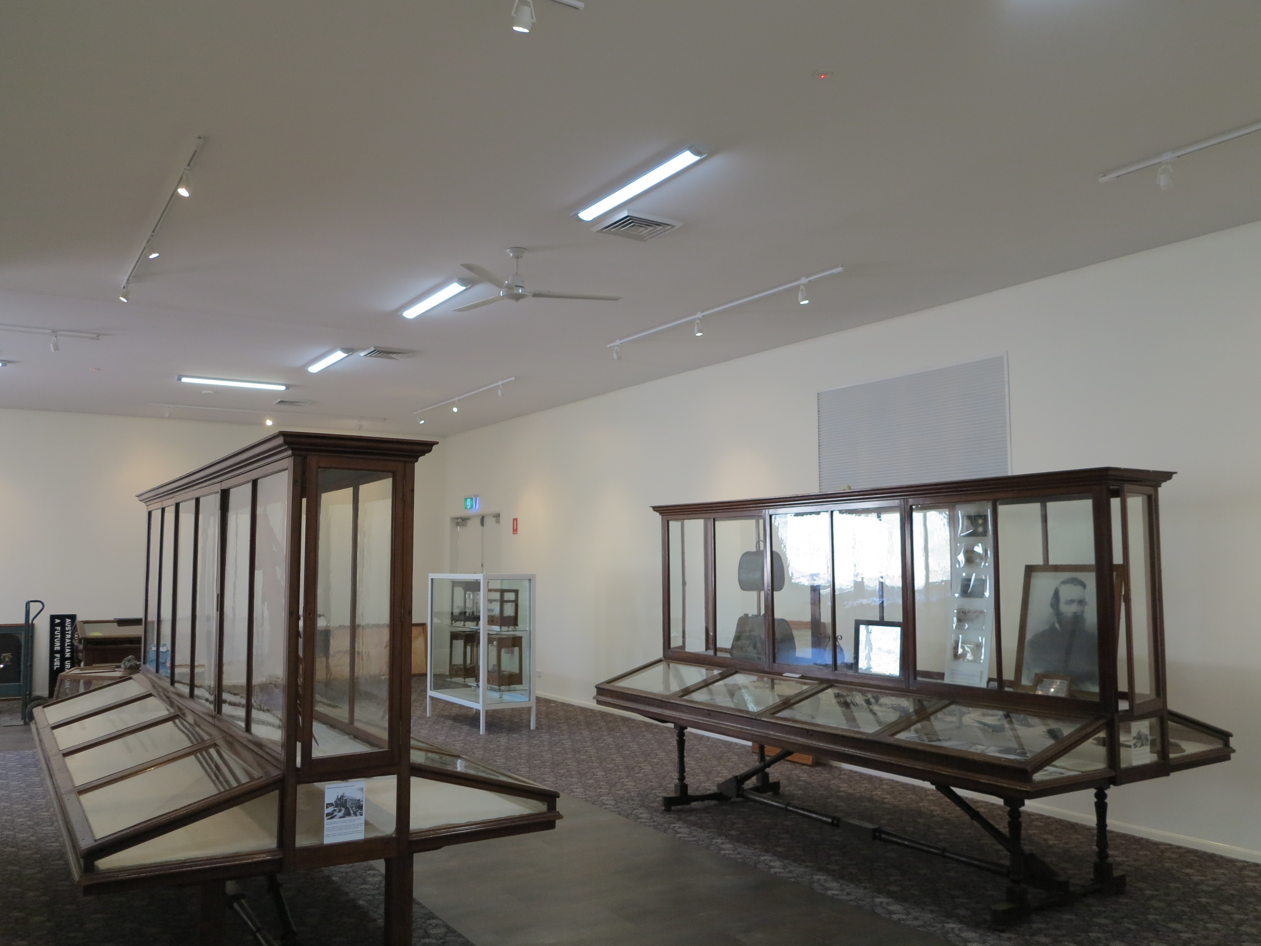 Timber display cabinets that once housed Queensland Museum’s collections in Brisbane have been unearthing themselves in museums throughout the State. Mary Kathleen Park in Cloncurry and James Cook Museum in Cooktown have both been visited recently by Cairns based MDO, Jo Wills, and Townsville based Ewen McPhee where they came accross the cases. Further enquiries also found them in Kingaroy at the Kingaroy Heritage Museum. All of the cases appear to be in good condition, and most are intact with early glass and are being used as intended – to display the State’s moveable cultural heritage. They are also a collection object in themselves.