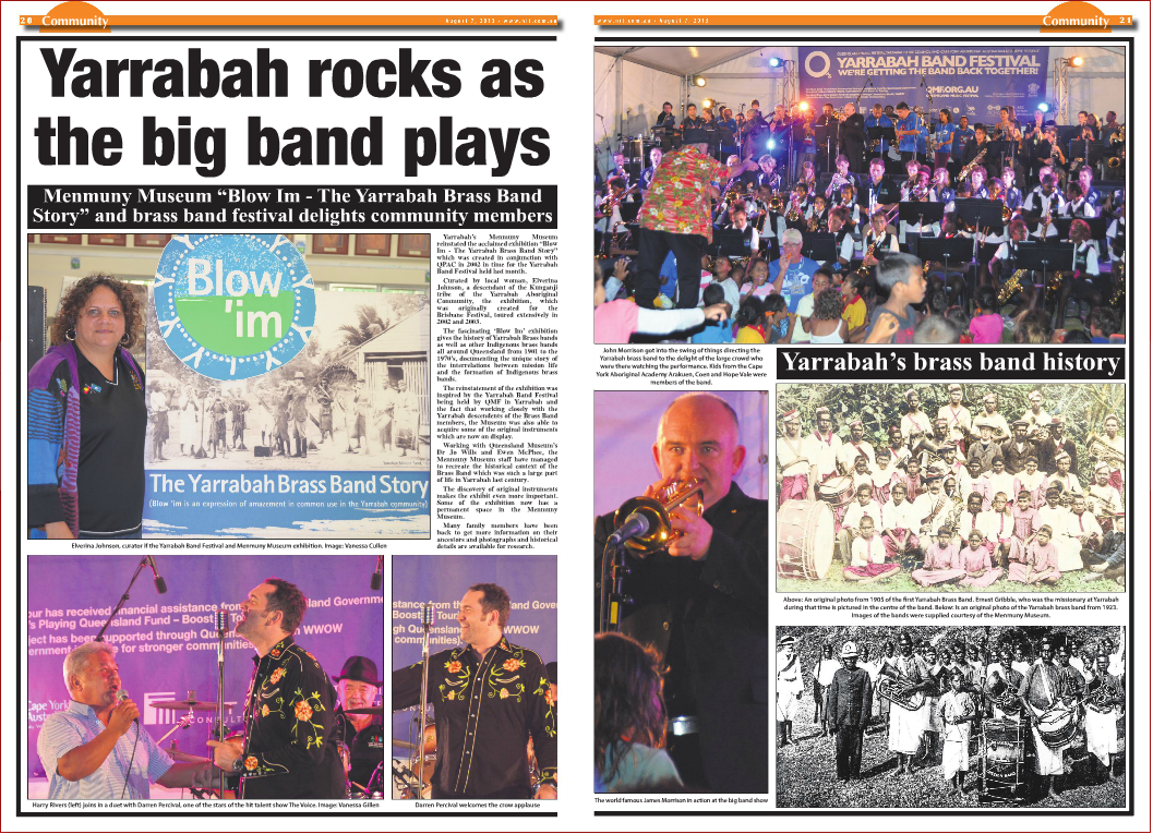 In mid July, MDOs Ewen McPhee and Dr Jo Wills worked with Bradley Higgins, archivist from Yarrabah’s Menmuny Museum, to install the “Blow ‘Im: The Yarrabah Brass Band Story” exhibition in time for the Yarrabah Band Festival.