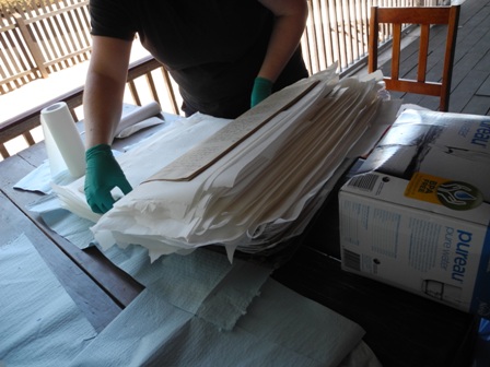 Lydia Egunnike, MDO for the southern inland region, organised all materials needed for the workshop, including vast quantities of paper towels, plastic spatulas and clean water. John Wein, the Secretary of the Historical Society, ensured there were plenty of fly screens on hand that could be used for drying racks, bricks to make tables higher and prevent sore backs, and food for a hungry work crew!