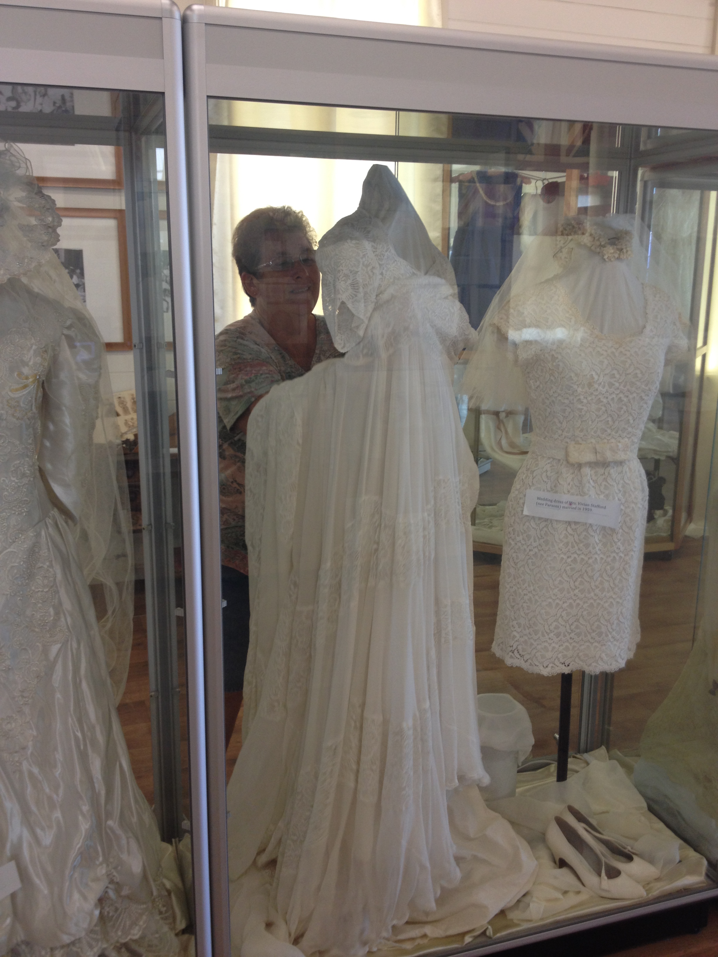 The most gorgeous dress in the whole collection in Stephanie’s opinion is the 1947 dress featuring a long train with inserted bands of lace in the skirt, and the bride of 92 yrs told us that the dress cost 100 pounds when it was made in Brisbane.