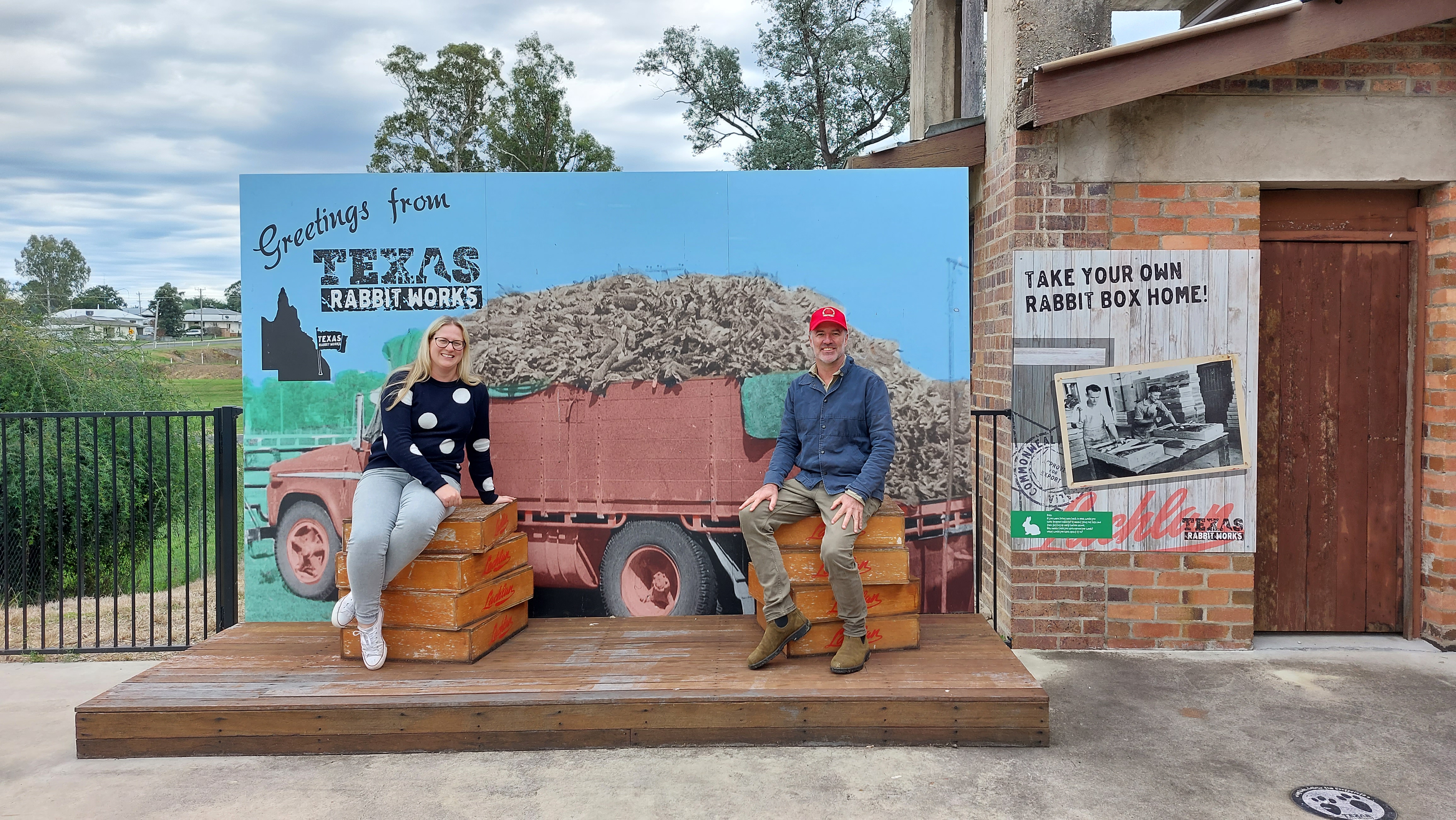 Our first stop was the little rural town of Texas, right on the border of New South Wales. The town got its iconic name from early pastoral runs, and when a holding was disputed the owner was inspired to name the station Texas, apparently a reference to land disputes common in the American range lands. While in town we were welcomed to the Rabbit Works, an amazing brick building on the edge of town which was a lifeline for the community during the Great Depression of the 1930s. It’s also the only remaining Rabbit Works building in the country, making it extra special! Queensland, like much of Australia, had been overrun by rabbits who decimated feed and ruined the landscape. The Rabbit Works provided work for locals, and supplied meat and fur to the United Kingdom and the USA, as well as to Akubra to make their famous hats. We were both absolutely amazed by some of the information shared about the rabbit economy for Australia, including more than four BILLION rabbits – skins and meat – being exported from Australia between 1904 and 1947. The Texas community including the dedicated team of volunteers who manage the site have done an incredible job in bringing this site to life, assisted by the work of the Goondiwindi Regional Council.