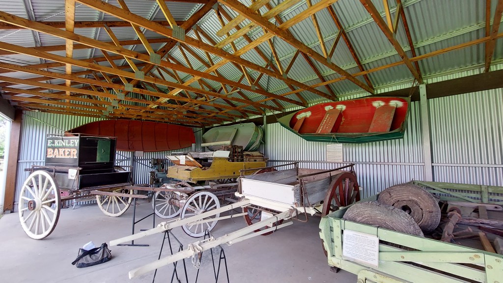 After a short stroll along the Macintyre River, waving hello at New South Wales on the opposite bank, we made our way to the Customs House Museum. Manned by a team of dedicated volunteers, this collection of heritage buildings from the Goondiwindi region showcases stories of local ingenuity, times of crisis and celebration, and gives visitors a great sense of what makes Goondiwindi tick. We both particularly liked the two flood boats, one of which was used in the devastating 1956 flood to mark the high water lines on trees along the riverbank. The town engineer then used these markings to design the levee, which has been so successful Goondwindi hasn’t flooded since!