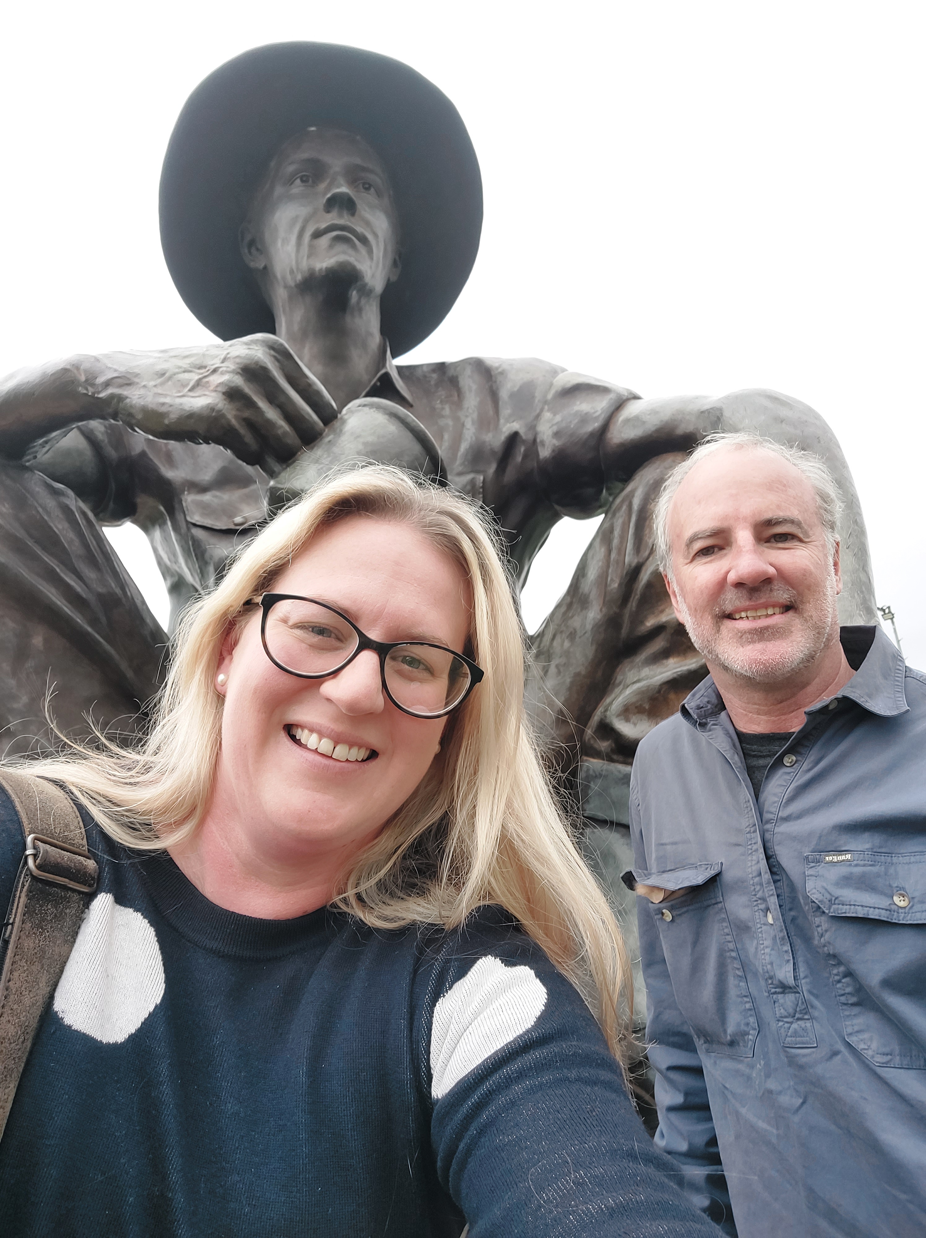 Once in Cunnamulla we headed to the Cunnamulla Fella Visitor Information Centre, where we met the lovely Carmel who showed us the features of their facility. The VIC also includes the town’s museum, which was a brilliant mix of thematic displays, local stories and audiovisual experiences. We loved some of the moving and quirky stories behind the collections, including the town band who came out and played at the railway station for every returning serviceperson in World War Two, and the stories of the local boxing gym and legendary coach Bill Johnstone, complete with miniature boxing ring. The museum also included an audiovisual experience exploring the artesian basin and opal mining, with associated audiovisual experiences looking at shearing and wool, and the largest cattle station in Australia – Tinnenburra. The collection of king plates from local First Nations leaders were also special to see.