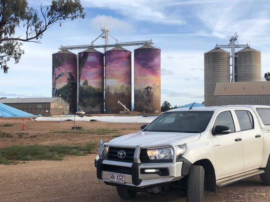 Since heading out from Goondiwindi on Wednesday morning, the on-the-road MDOs have headed further west into cotton country, with the first stop Thallon. This little community boasts a supersized art presence, with the grain silos dominating the horizon painted with dazzling murals. William the northern hairy nosed wombat was also popular with one MDO in particular, although she’s still looking out for the real thing…