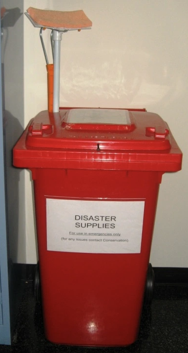 Example of disaster supply bin – cable tie shut and cut when needed. This will mean that supplies aren’t used for general cleaning purposes